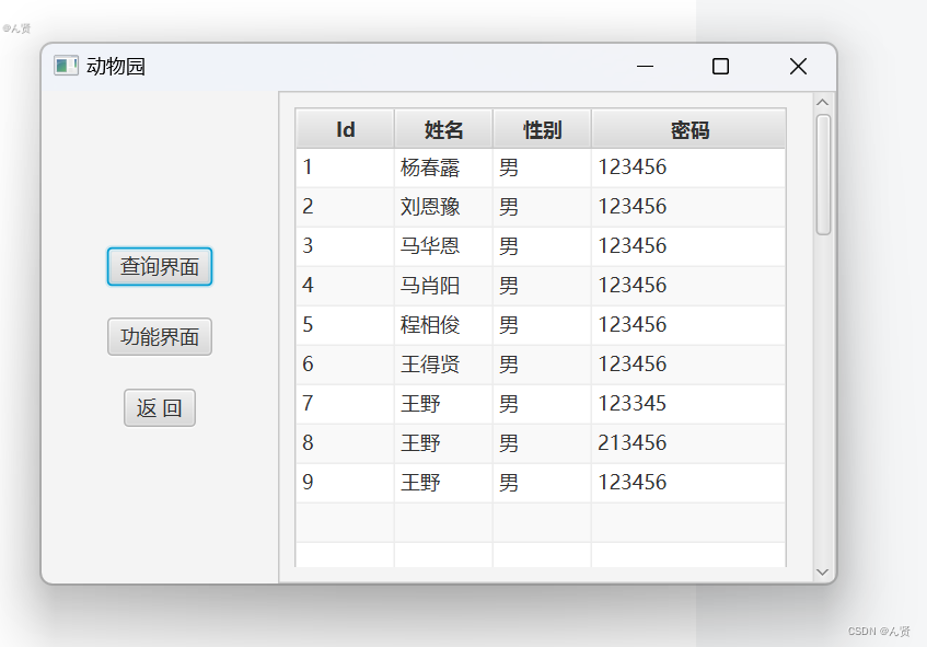 }我这里就不展示了,代码我将会打包放在下方。重点提醒,javaFx将会落伍,就像java.swing已被淘汰。新技术层出不穷,想要不落后,只有在学习之时,抓住重点。在本次作品中,重点其实是mysql的应用!!做整个作品,其实就是再练习mysql怎么用。