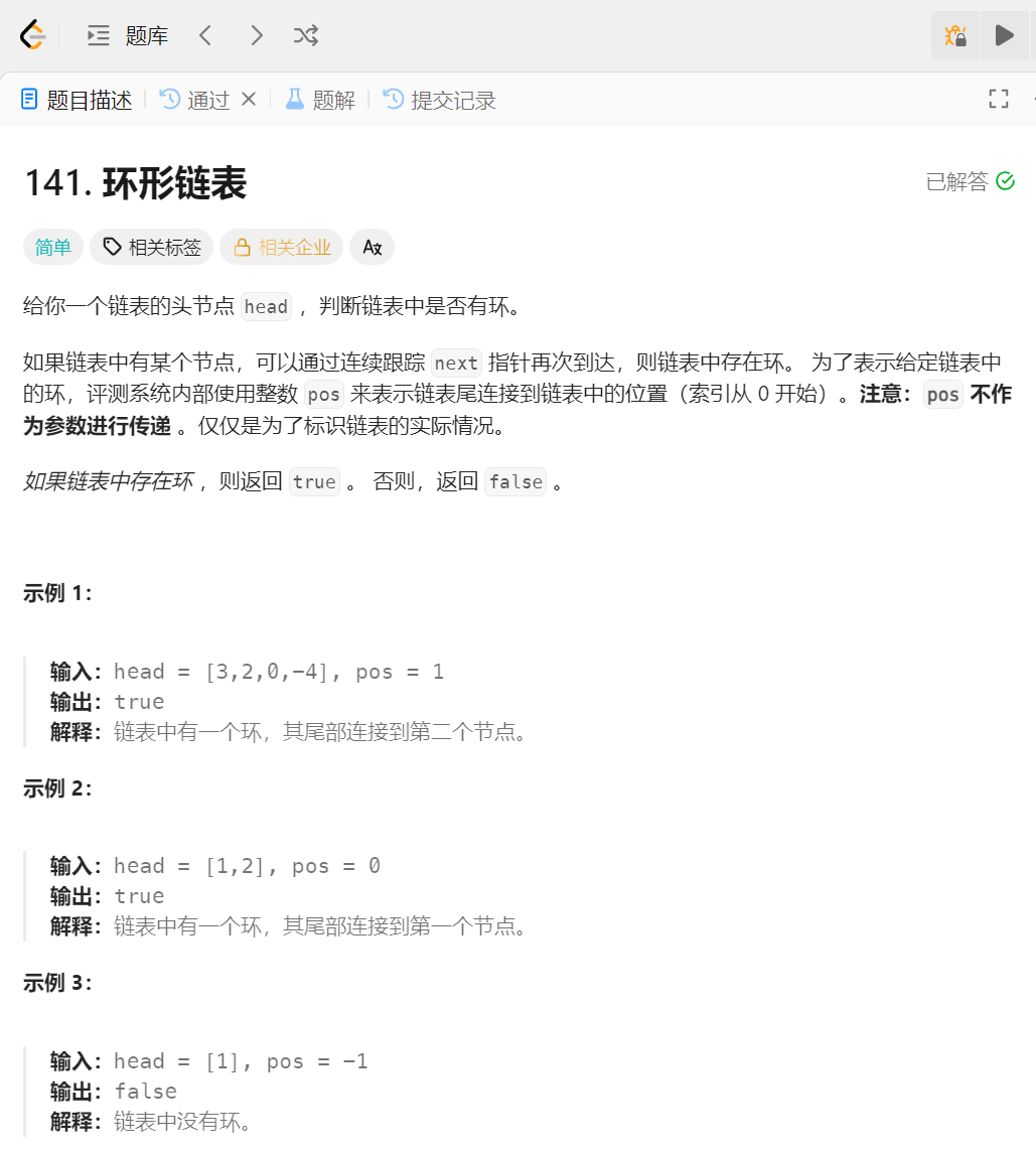 题目要求:判断链表是否有环,并且如果有环的话,找到环的入口节点。