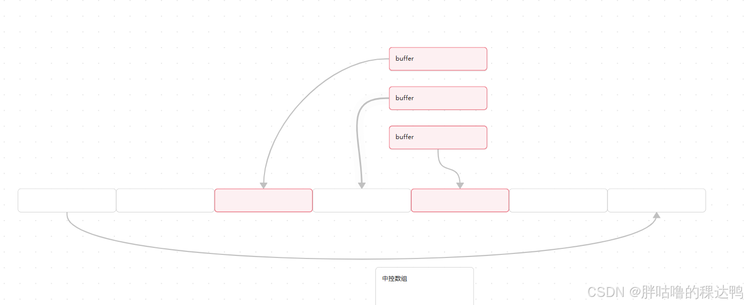 将每一段数组(buffer)都放置到一个中控数组中,中控数组是一个指针数组,也即是中控数组中最中间分别有一个指针对应每一段数组(buffer),如果我们需要头插,就在第一段数组前面再开一个buffer数组。尾插也是一个道理的,如果需要扩容,那就开一个更大的中控数组,把数据再拷贝下来到这个更大的中控数组中。