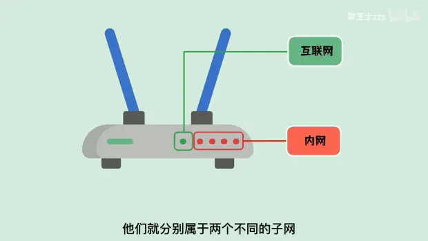 路由器有一个WAN口接入互联网。多个LAN口接入本地网络。它们就分别属于两个不同的子网。