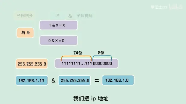 比如192.168.1.10与255.255.255.0=192.168.1.0