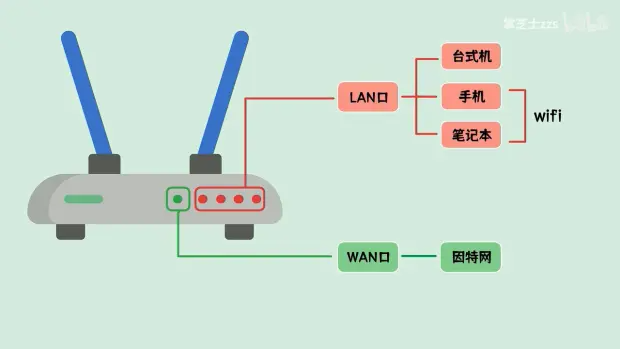 路由器有两种接口,一种是LAN口,一种是WAN口,LAN口可以有多个用来接家庭网络设备。比如,台式机,手机,笔记本,其中手机和笔记本是通过wifi连接到路由器的设备,也相当于连接到了LAN口上。WAN口只有一个,用来接入运用商网络,以连接到互联网中。如果把路由器的WAN口忽略,只用LAN口,其实路由器就是一台交换机。