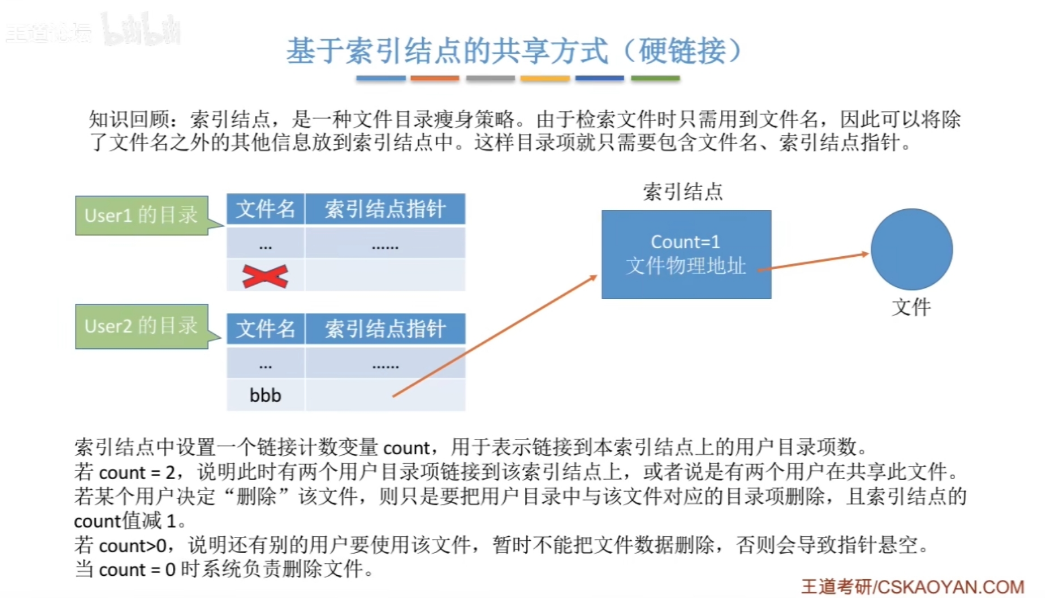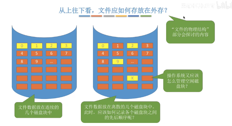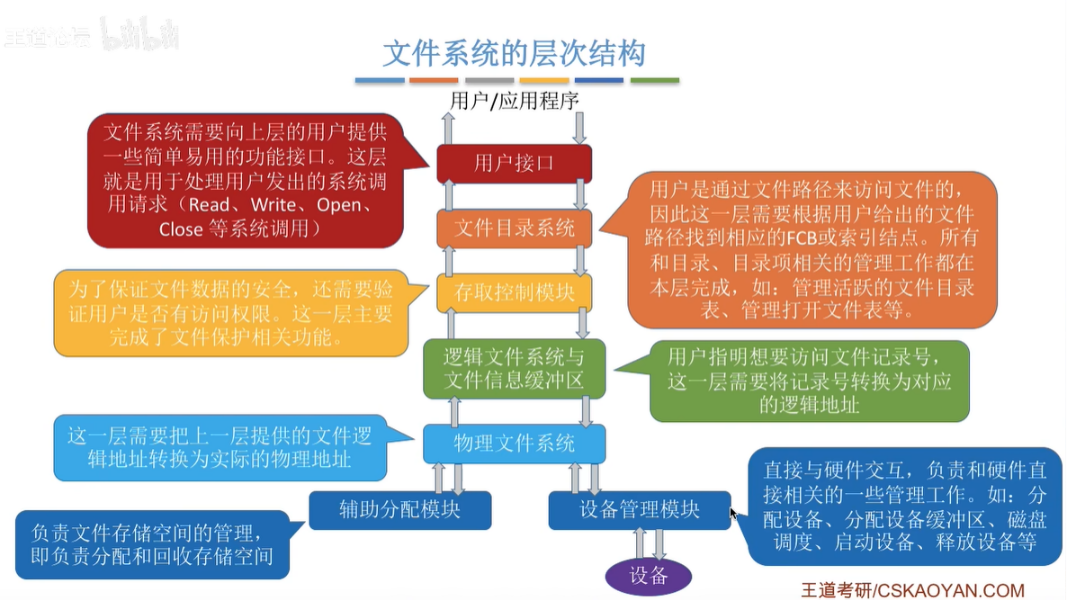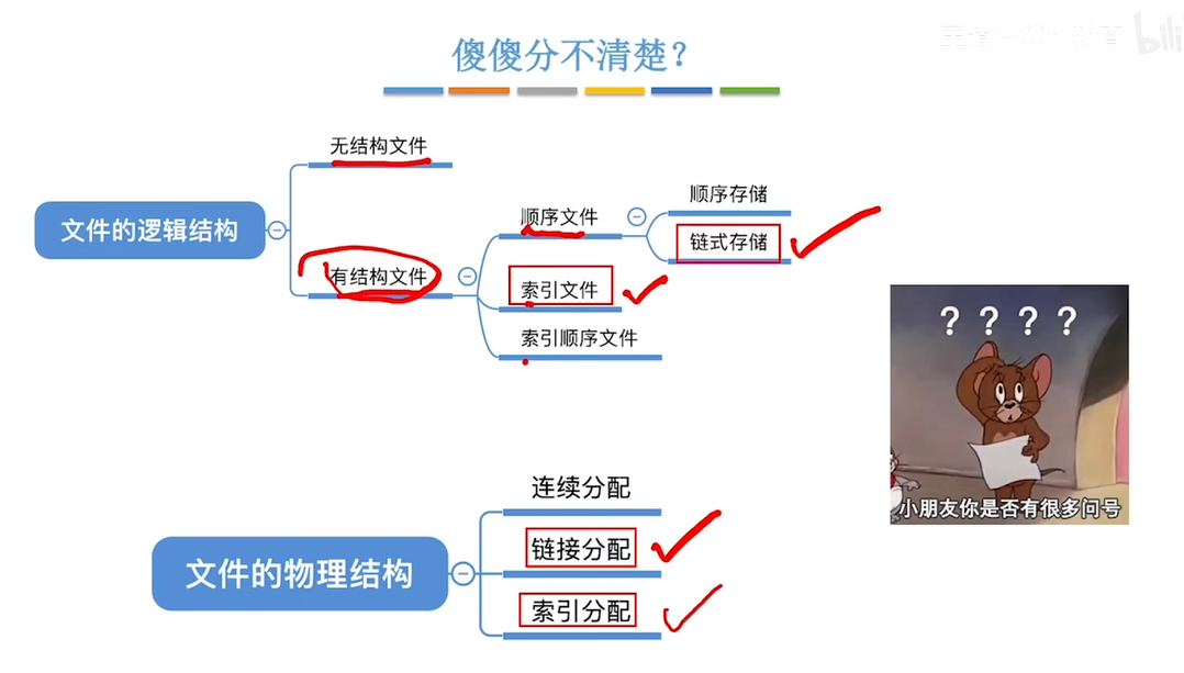 6.20(周五) | 上午 | 这个回顾一下,这几天学习了逻辑结构与物理结构。其中逻辑机构(由用户决定--与内存息息相关,且操作系统并不关心)-专门用来管理内存中的文件。其次就是物理结构(由操作系统决定,将文件采用什么样的方式存储在外存上。并负责逻辑块与物理块的转化) 其中,他们都包含顺序、链式、索引分配。 |