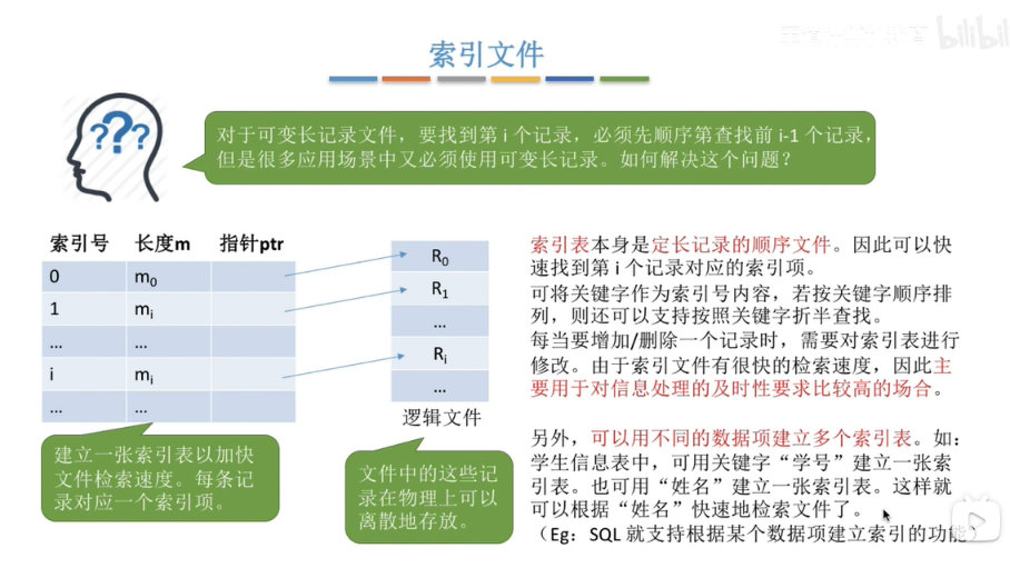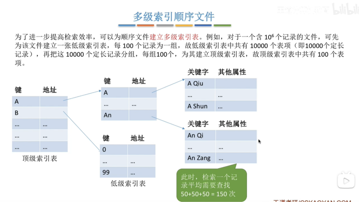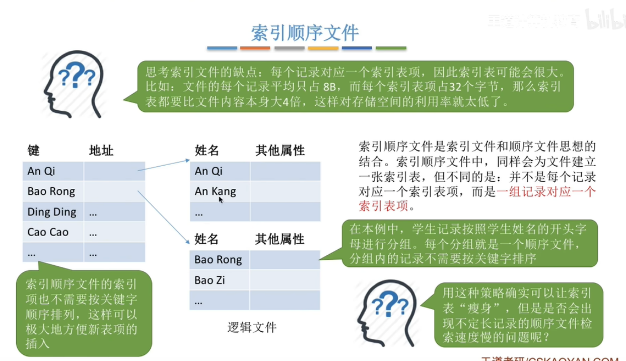 举例子里的学生记录:按姓名开头字母分组(比如 A 开头、B 开头… ),每组就是一个小的 “顺序文件” 。索引表只需要给每个组配一个索引项,不用管组里具体多少条记录~