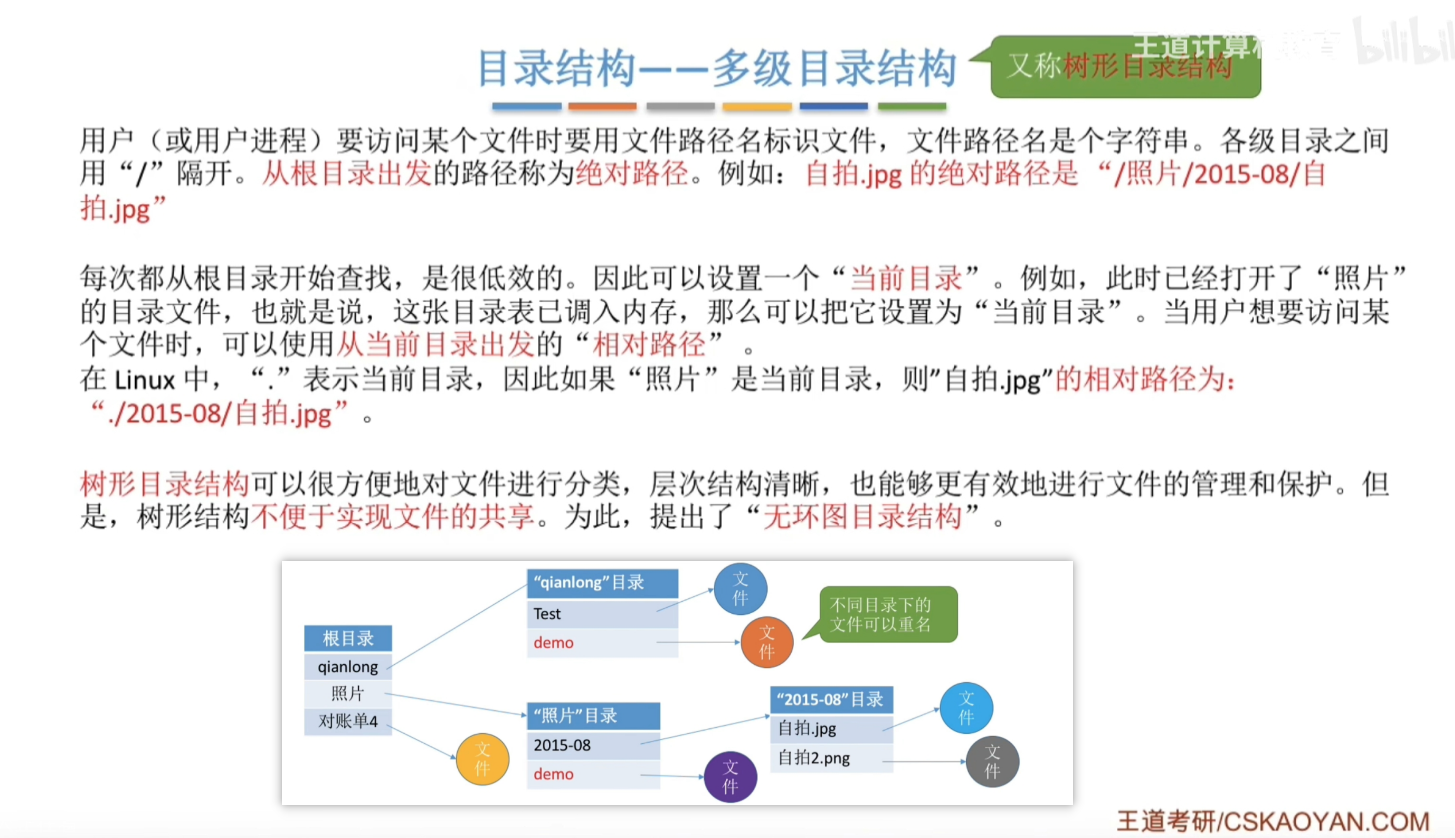 多级文件目录 -- 两级文件目录的拓展版本,但共享不方便