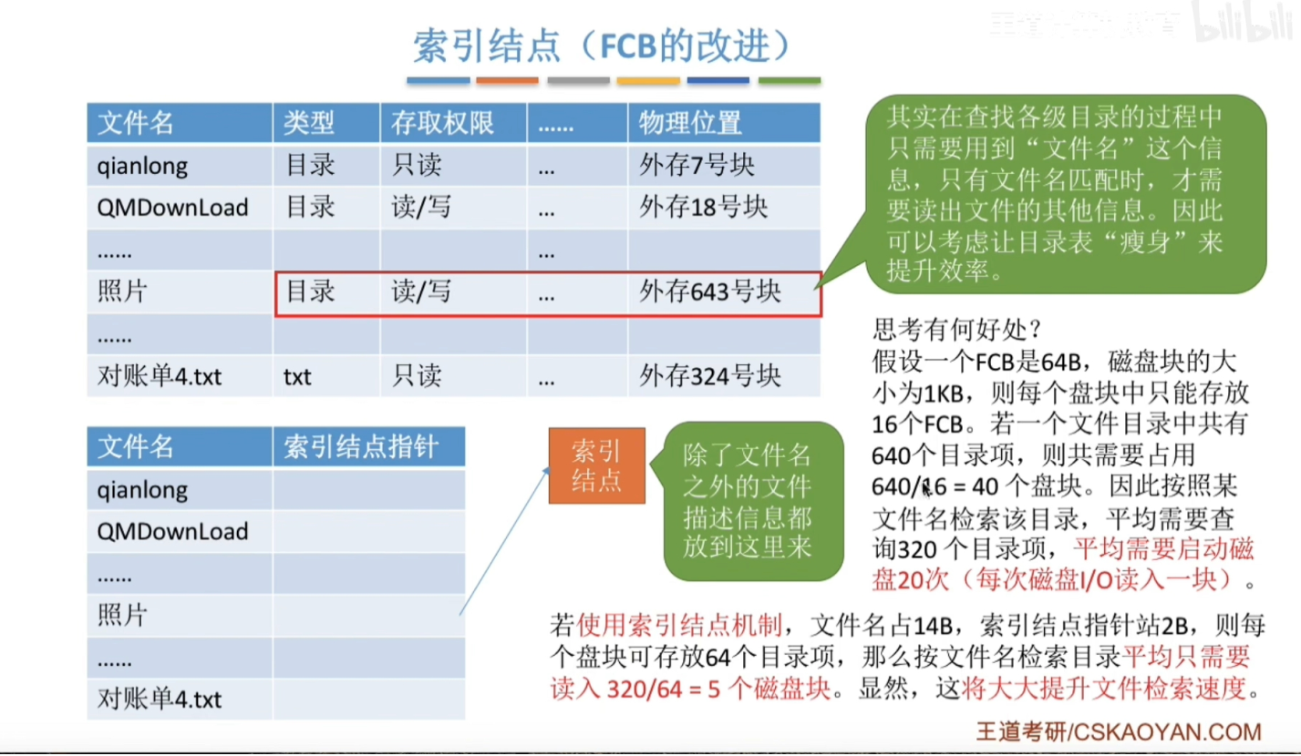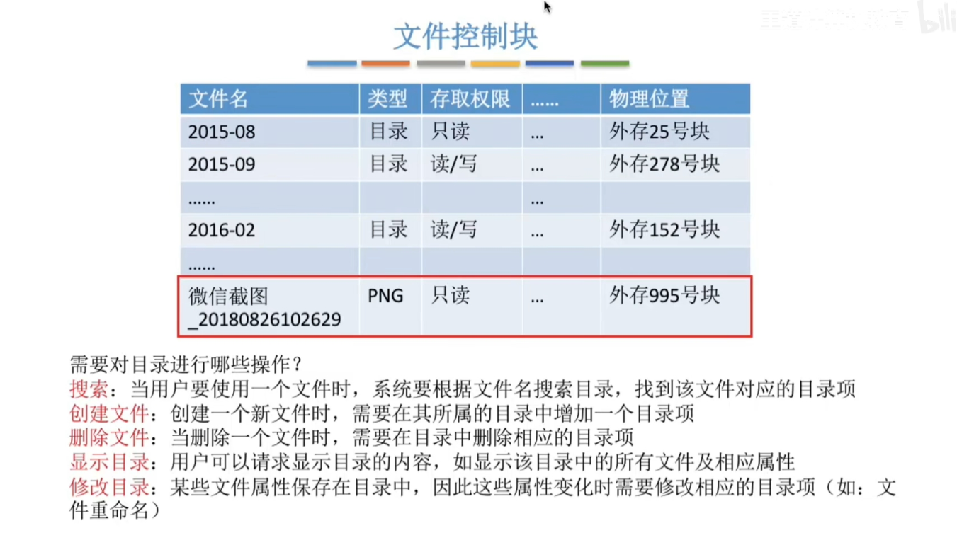 首先引出一个整个文件目录,包含多个目录项(也就是文件控制块--FCB)。