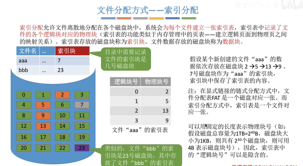 索引分配就是 -- 一个逻辑块号与物理块号一一对应。