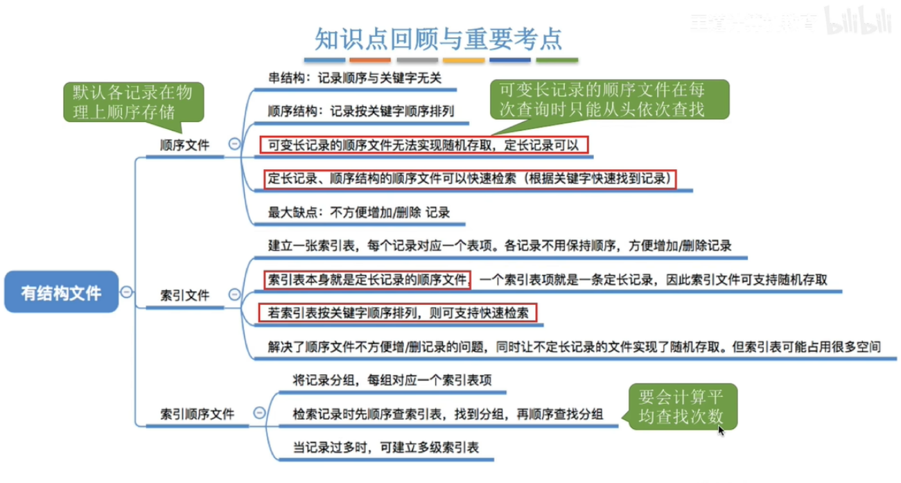 有结构文件分为顺序文件(不方便增删操作)、索引文件(解决了顺序文件问题,但是浪费内存,检索时间不优)、索引顺序文件(结合了索引与顺序文件的优点。取其精华、去其糟粕)