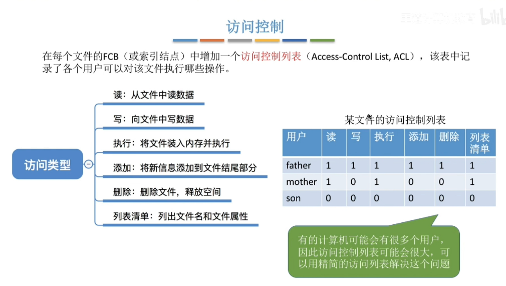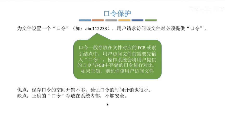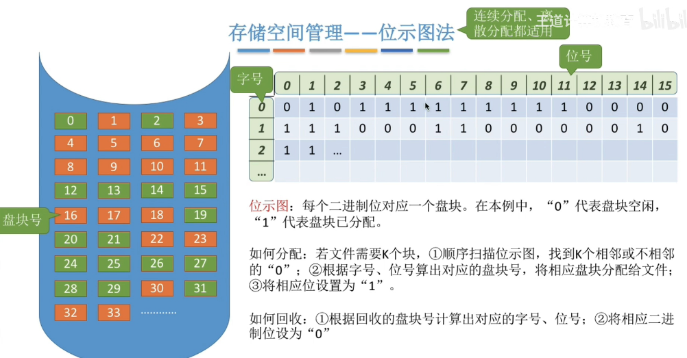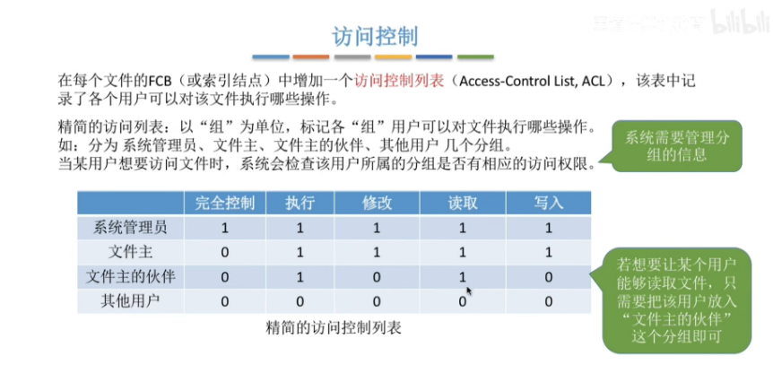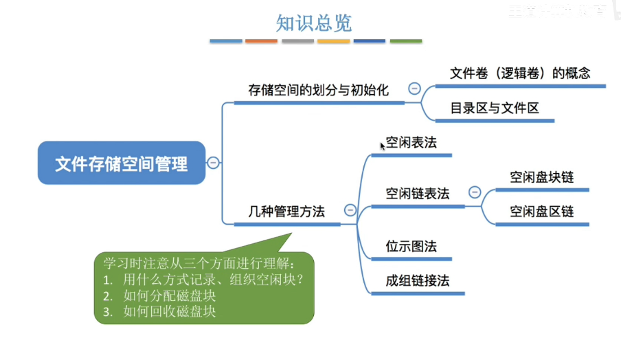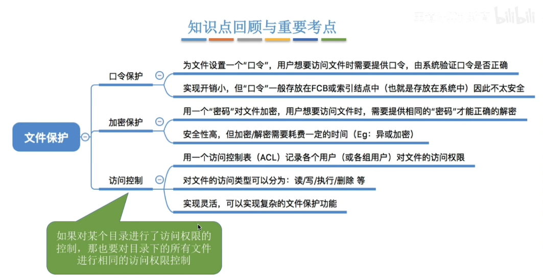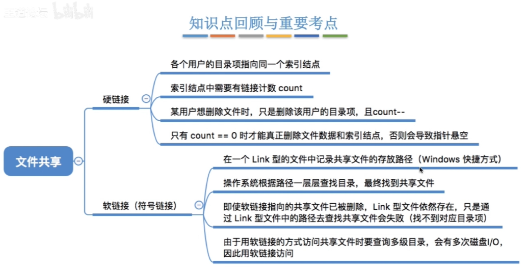 下午 | 学习了文件存储管理(空闲表法、空闲链表法、位视图法、 成组链表法) 学习完储存,然后学习了文件的基础操作(从创建删除,到打开关闭,又组合出读写功能)有了存储、操作,之后又学习了软硬链接的操作--为共享文件而生,软连接为Link法。口令/加密/访问保护,其中我认为访问保护的发放权限功能最绝。 | |