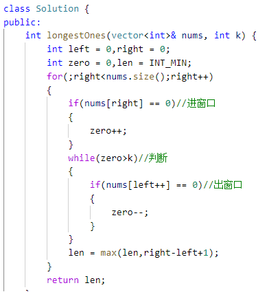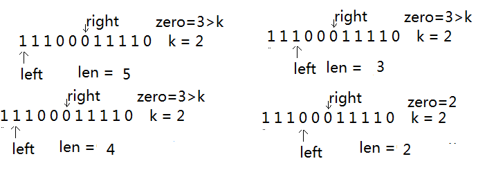 4.更新结果:当zero<k时,我们就可以更新结果,用len来记录。