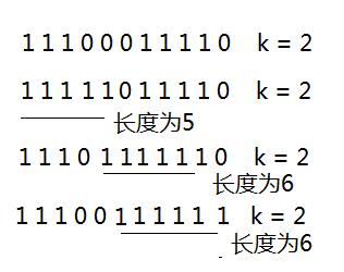 经过上面的分析,我们将问题转化为找出最长的子数组,且0的个数不超过个。