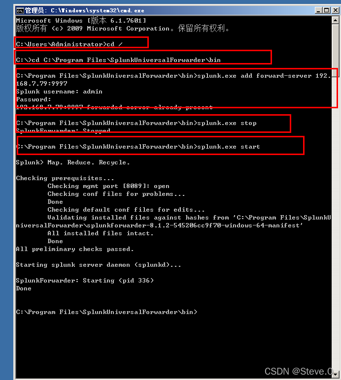 C:\Program Files\SplunkUniversalForwarder\bin>splunk.exe add forward-server 192.168.7.79:9997