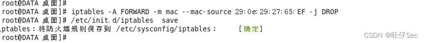 6. 禁止转发来自 MAC 地址为 29:0E:29:27:65:EF 主机的数据包, 将 iptables 配置命令截图: