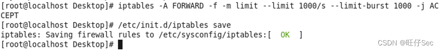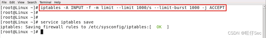 4. 为防御 IP 碎片攻击,设置 iptables 防火墙策略限制 IP 碎片 的数量,仅允许每秒处理 1000 个,将 iptables 配置命令截图: