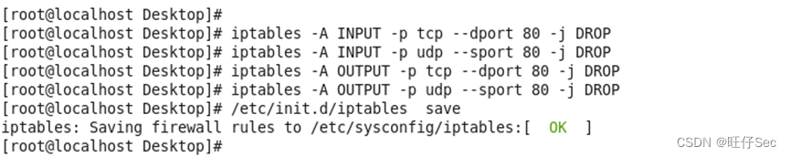 8.为防止Nmap等扫描软件探测到关键信息,设置iptables防火墙策略对80号端口进行流量处理;
