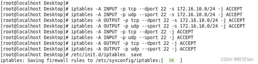 13.为防止SSH服务被暴力枚举,设置iptables防火墙策略仅允许172.16.10.0/24网段内的主机通过SSH连接本机