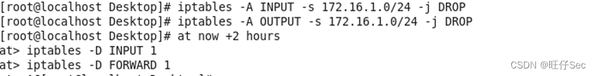 22.配置iptables防火墙过滤规则,以封堵目标网段(172.16.1.0/24),并在两小时后解除封锁
