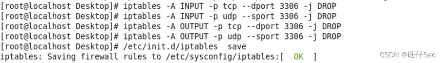 3.为防止Nmap扫描软件探测到关键信息,设置iptables防火墙策略对80、3306号端口进行流量处理;