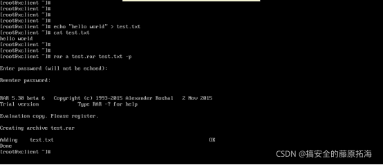 将test.txt加密成RAR文件,加密密码:123456