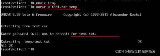 unrar x test.rar temp