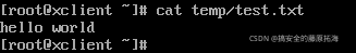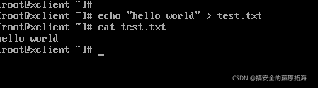 在linux系统下创建实验文件test.txt,文件内容“hello world”
