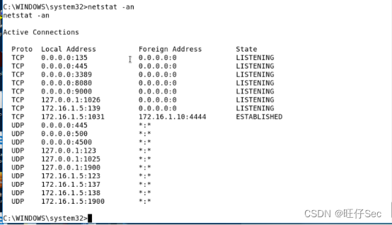 第九步,使用cmd命令,如netstat -an查看端口打开情况