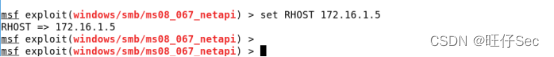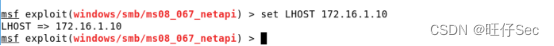 使用命令set LHOST来设置渗透机监听的地址本次实验地址为172.16.1.10