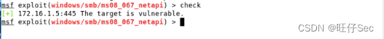 第七步,使用命令check来检测目标靶机是否该漏洞