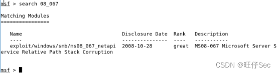 通过search命令来搜索smb溢出模块ms08_067并进行利用