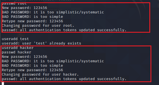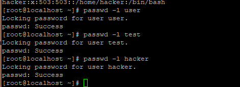 然后把可疑用户给锁定一下,这里hacker用户是我创建的也锁定一下