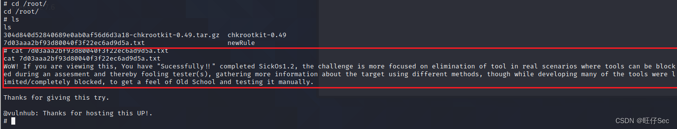3、最后就是靶机的提权,多多浏览靶机内的可疑文件,结合exp库来实现最终提权的目的。
