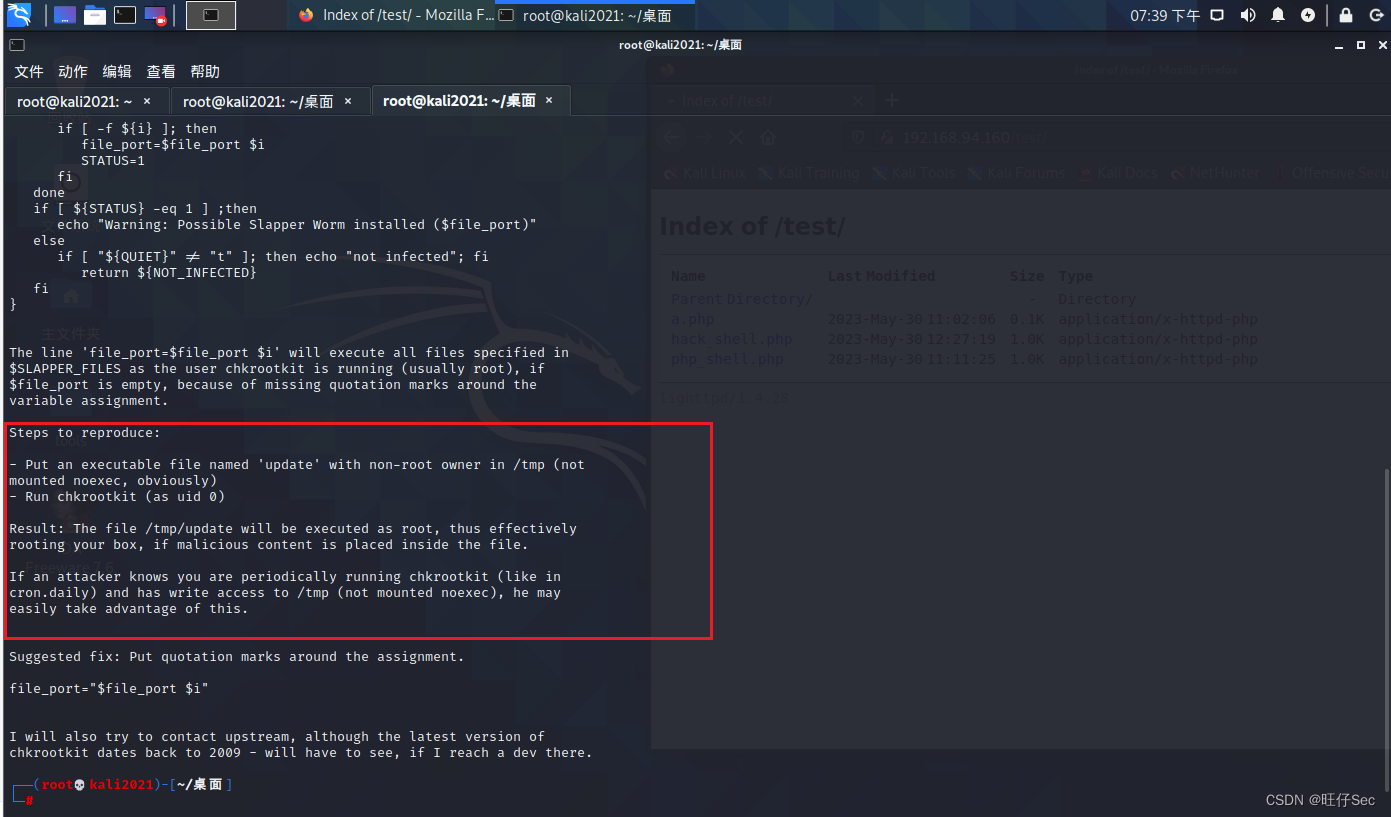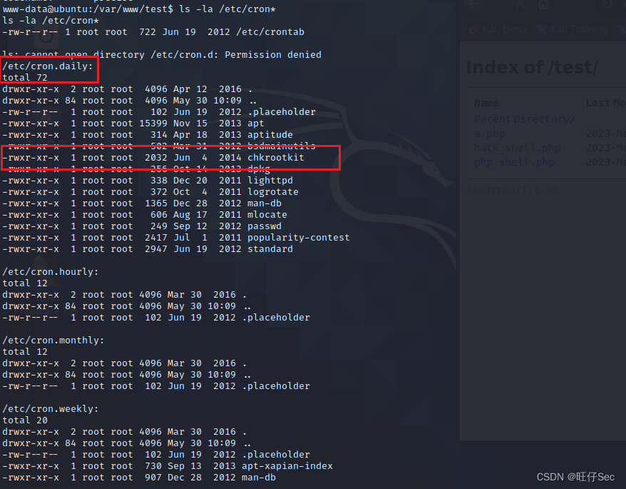 2.以root身份运行chkrootkit,其文件/ tmp /update将以root身份执行。