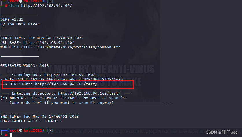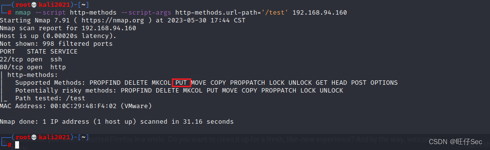 1、通过前面的靶机信息发现,得出test目录,接下来用nmap脚本扫描test目录