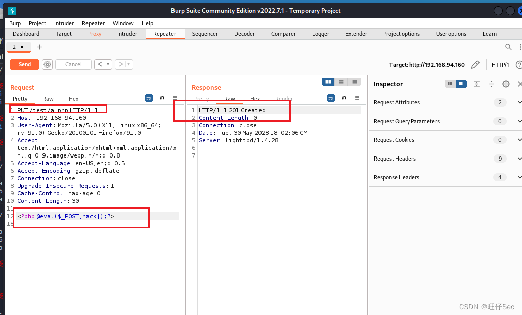 扫描得出支持PUT方法,那么就可以来测试PUT上传