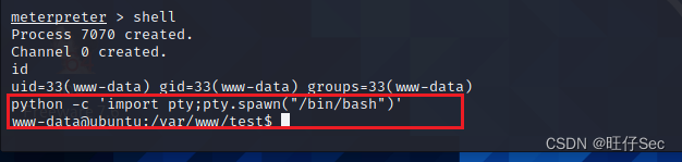 pty模块中的spawn函数。该函数可以启动一个新的Shell子进程,并将当前的终端会话作为其控制终端进行添加。这是此Python代码片段的功能,它在内部执行了/bin/bash命令来启动一个新的Shell子进程,并利用pty.spawn()函数将其设置为当前会话的交互式Shell会话。 可以将该代码段复制到Linux系统的终端中,然后按回车键以立即开始Shell会话。然后,您可以在该Shell中执行各种命令或操作,完全与在终端中执行一样。请注意,如果您在维护通过此代码片段启动的Shel会话,始终可以使用exit命令退出该Shell会话。