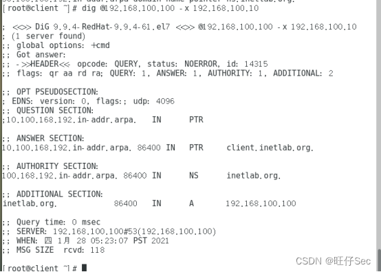 由于本服务器的IP:192.168.100.100,因此定义192.168.100.0网段的反向区域