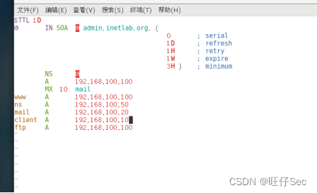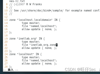 前提:在任务1 已经配置/etc/named.conf,现在只从定义区域开始。
