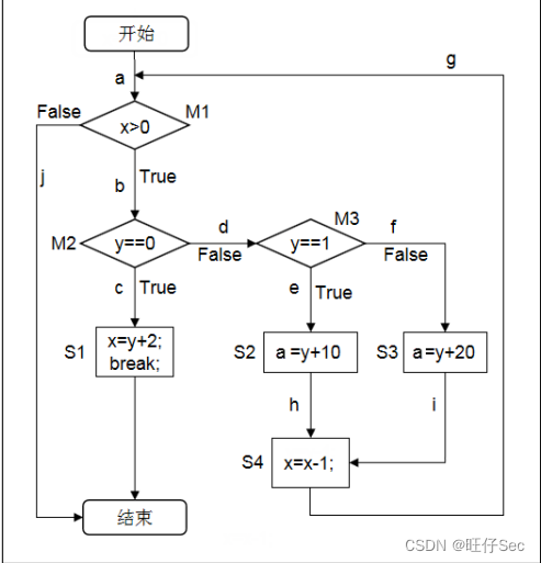 根据下面的代码段,画出程序流程图,对程序流程图进行分析,设计一组测试用例,满足语句覆盖。