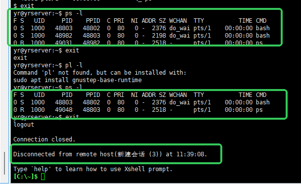 - 继续执行exit命令, 退出PID等于48989的子shell