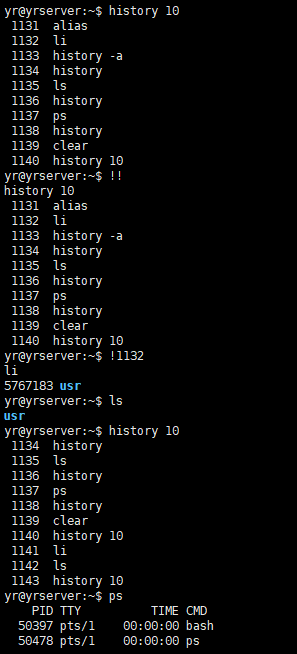 - !n: n为历史命令编号