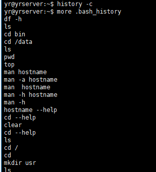 - -c : 清除历史命令,但不会立刻从/.bash_history中删除, 如下图
