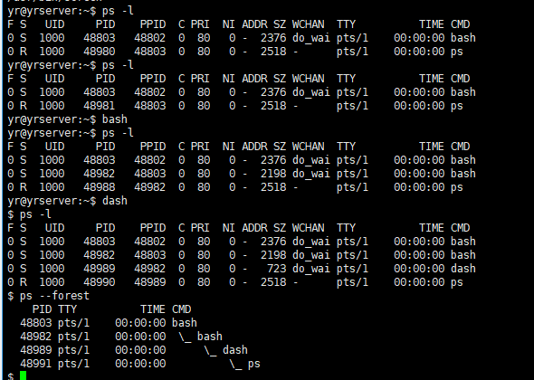 - ps --forest查看进程树或者ps -l 查看ppid和pid来观察依赖关系