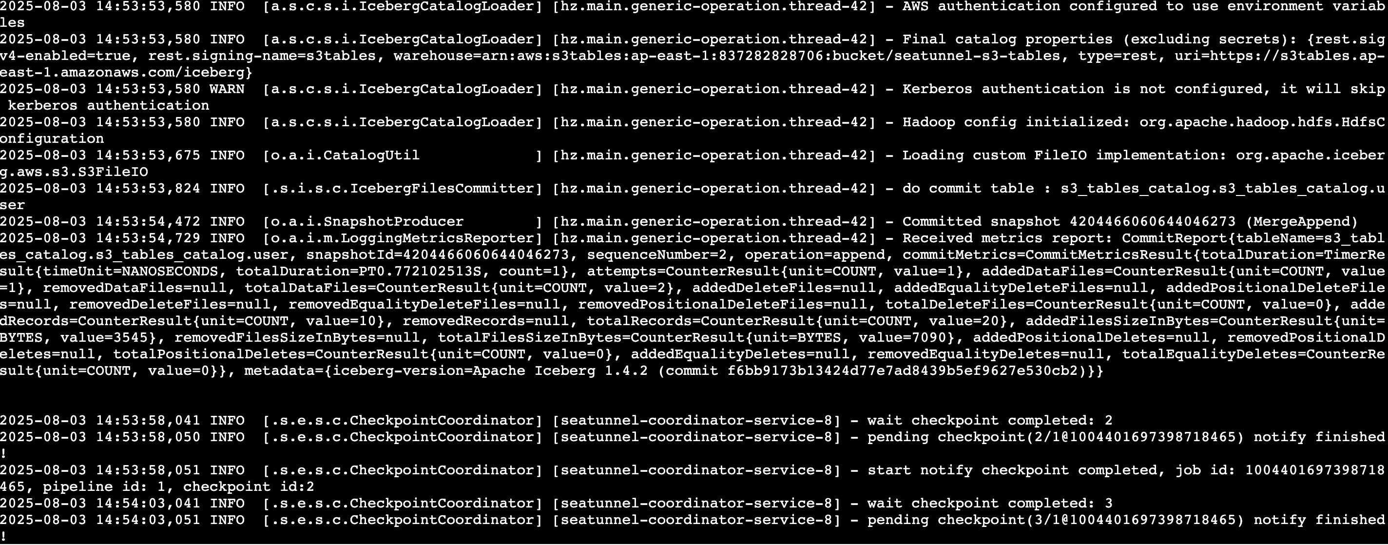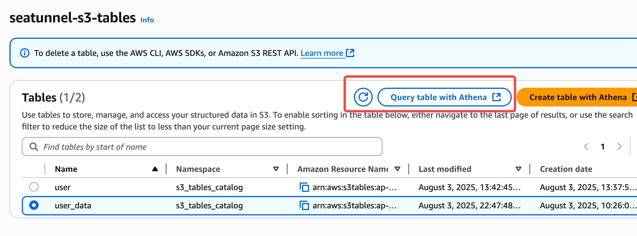 本文将介绍如何使用 Apache SeaTunnel ,一个高性能、分布式的大规模数据集成工具,通过兼容 Iceberg rest catalog 的实现对接 S3 Tables 实现实时和批量数据集成。