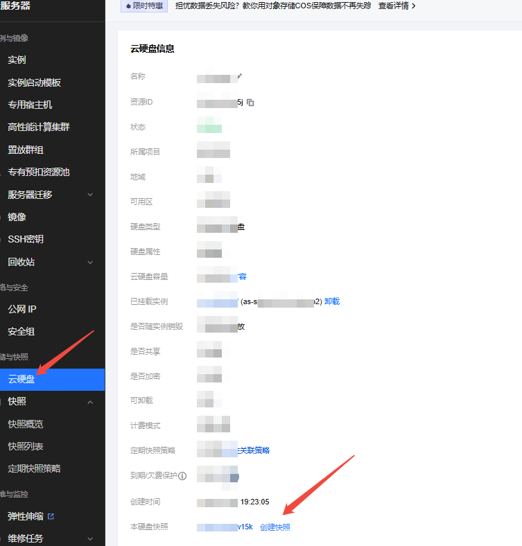 场景二:如果目标可用区有机器,只是想将数据盘数据迁移过去,可以通过快照创建云硬盘直接到目标可用区,挂载即可。