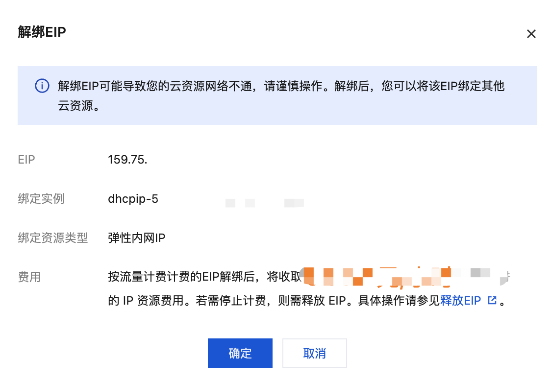 然后解绑eip,在公网 IP 页面顶部,选择需要解绑云资源的 EIP 的地域,并在对应 EIP 所在行的操作栏下,单击更多 > 解绑。