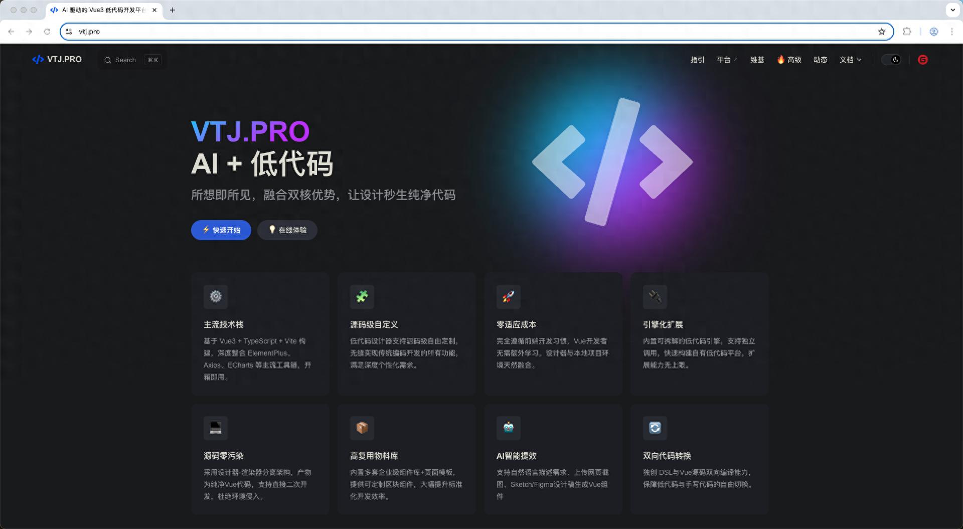 传统业务平台在长期的运营中积累了大量的业务数据和流程,但随着市场需求的快速变化,其开发和迭代速度往往难以满足企业的发展需求。低代码工具以其可视化开发、快速迭代的特点,能够显著缩短开发周期,降低开发成本。将VTJ.PRO集成到传统业务平台中,可以使企业在保留原有业务系统的基础上,快速开发新的功能模块,提升业务响应速度。