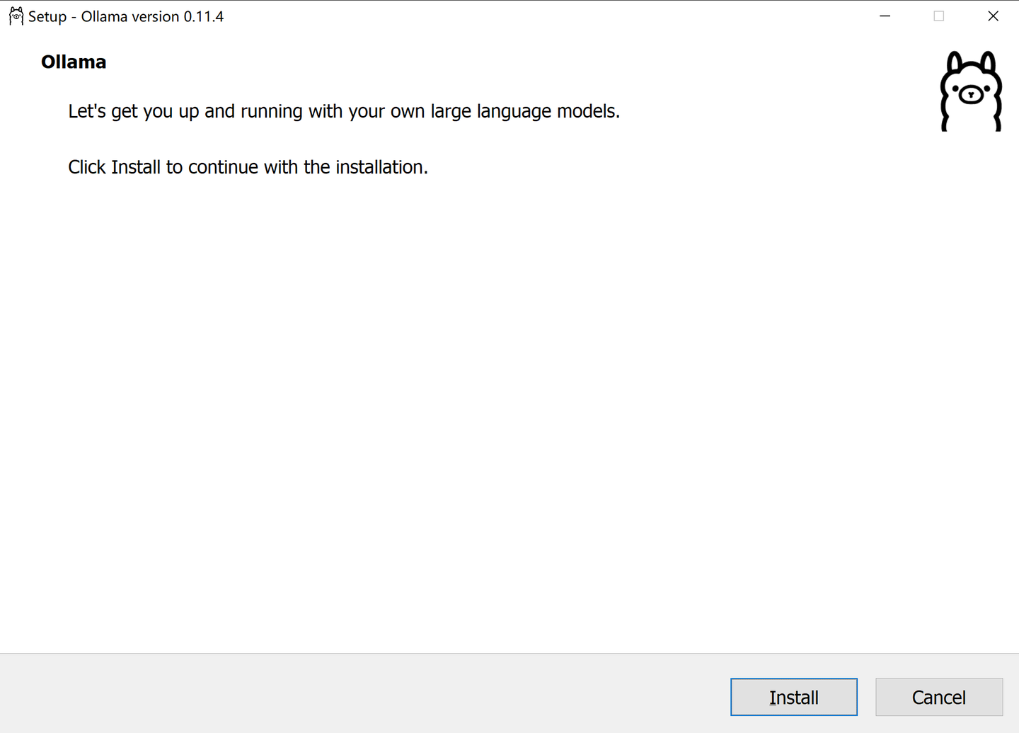 3.下载完成后,双击OllamaSetup.exe直接运行后点击Install开始安装,注意此处无法选择安装目录,如果需要修改目录需手动迁移;