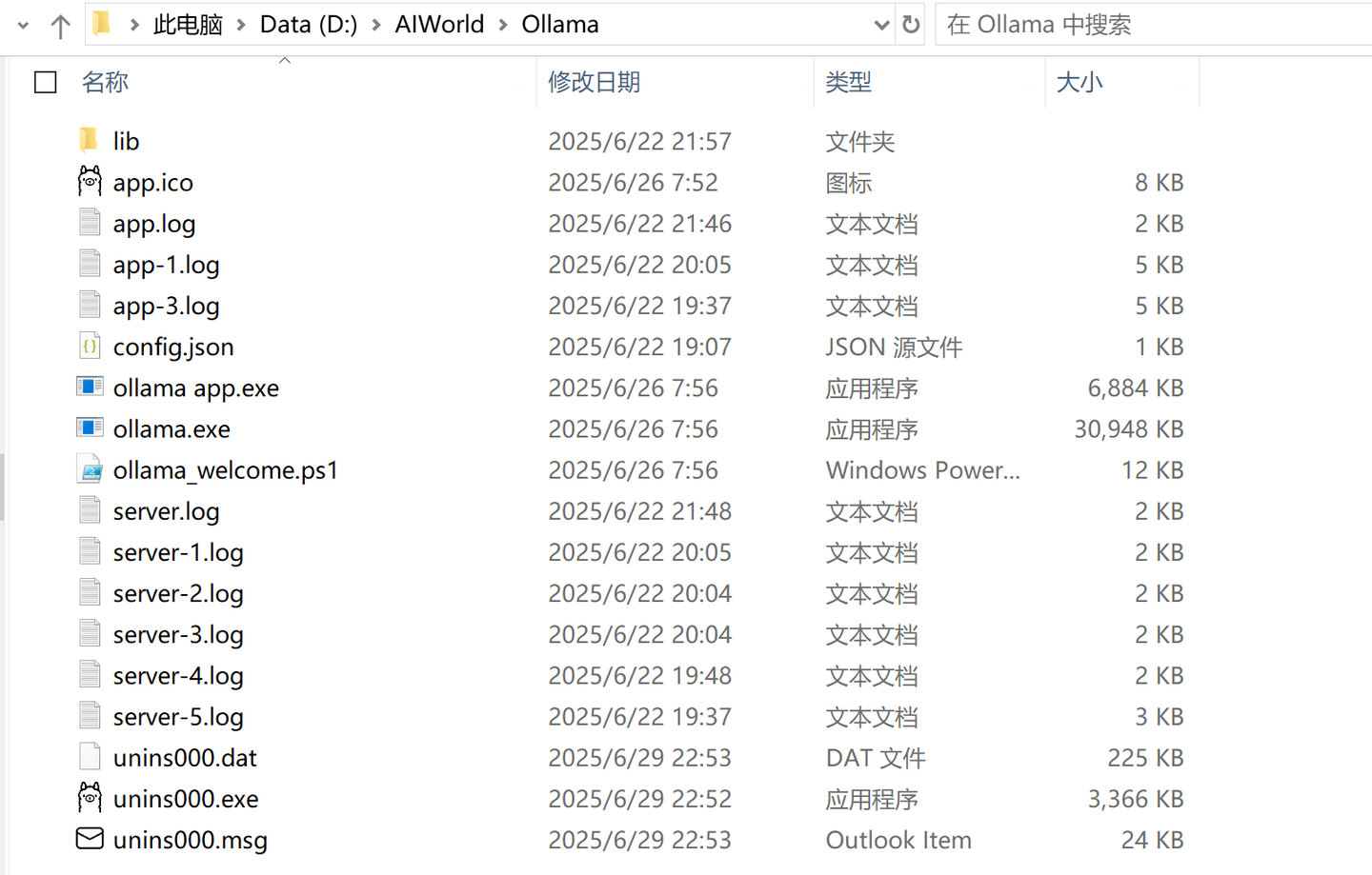 6.将整个文件夹直接剪切到新的路径,如D:\AIWorld\Ollama