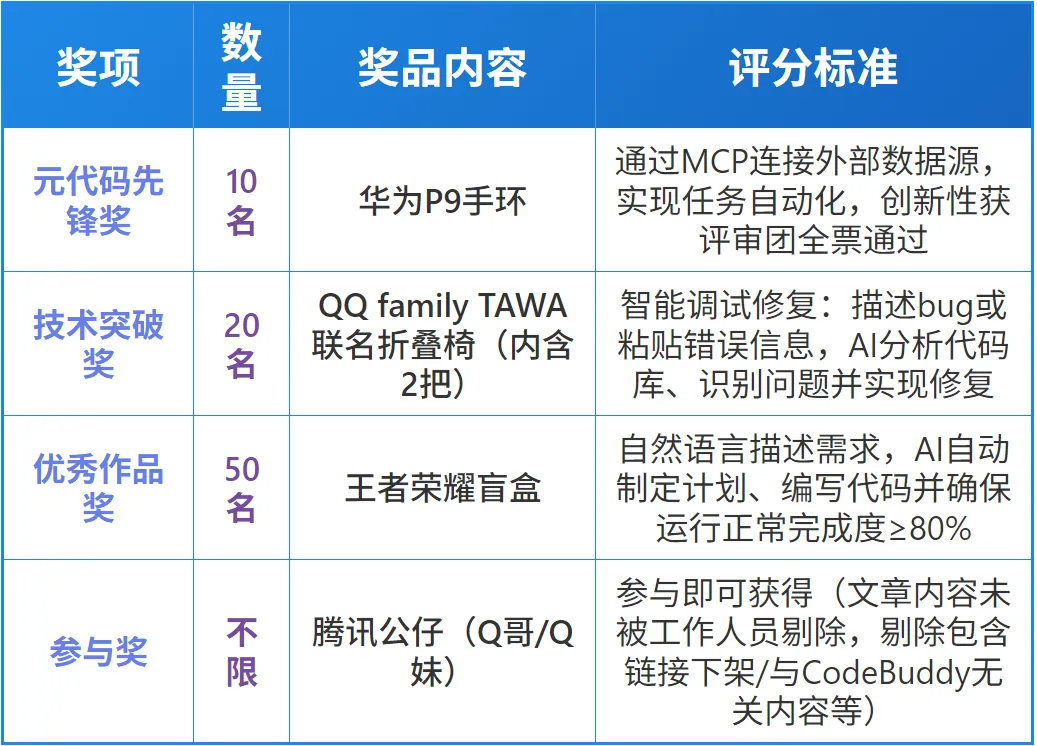 ● 评审团:3 名 CodeBuddy 技术负责人 + 2 名 CodeBuddy 产品经理